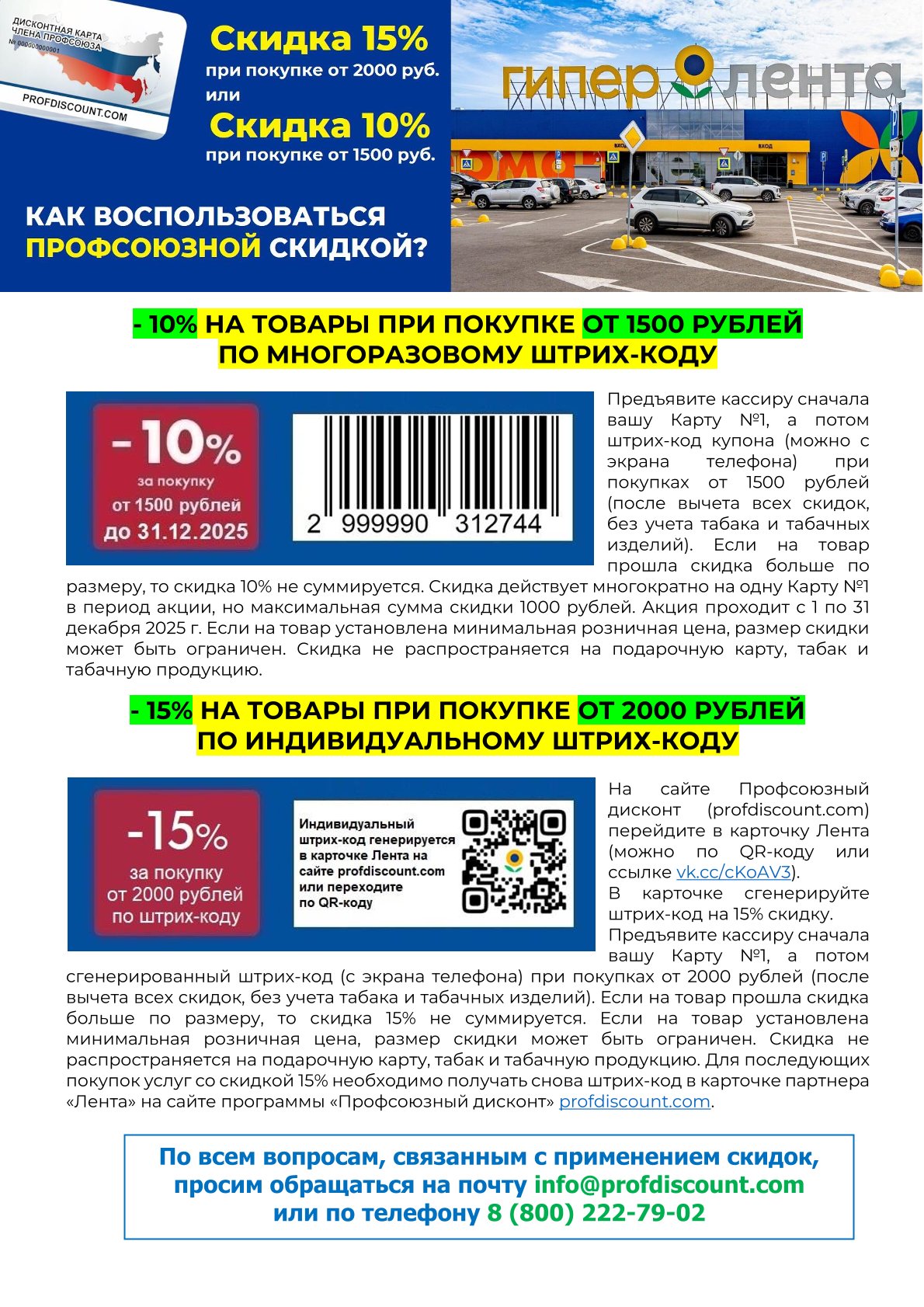 Профсоюзные скидки
