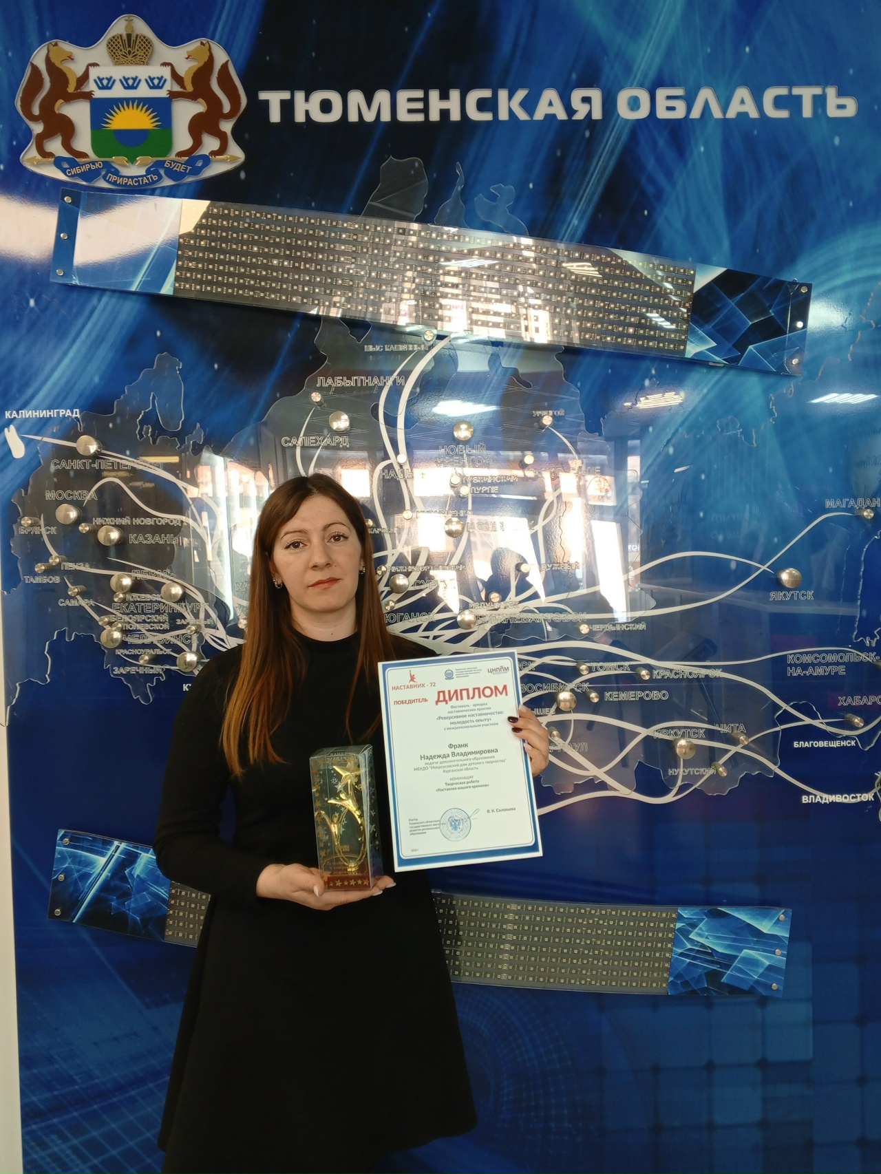 Педагог МБУ ДО "Мокроусовский дом детского творчества" Франк Н.В. победитель Фестиваля-ярмарки наставнических практик "Реверсивное наставничество: молодость опыту" с межрегиональным участием. Очный этап Фестиваля, приуроченный к Дню наставника, прошел 26 февраля в Тюменском государственном областном институте развития регионального образования.